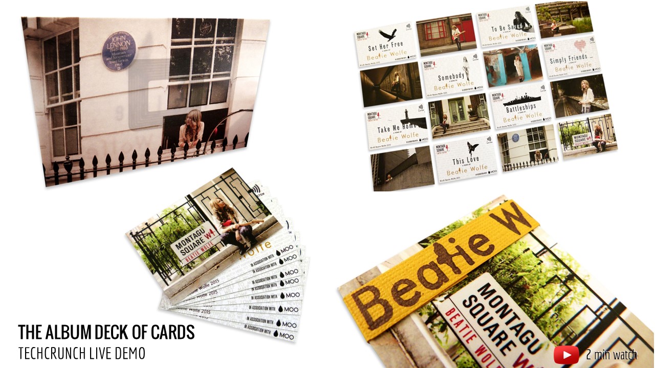 Beatie Wolfe has been working with Sean Adams (Chair of ArtCenter) and MOO to develop her Raw Space Album Deck (an update of her 'world's first' concept for her album Montagu Square) with some of the world's most influential designers, which include Erik Spiekermann, Marian Bantjes, Astrid Stavro, Lucienne Roberts (more about them below) who have each designed a song card for her Raw Space Deck