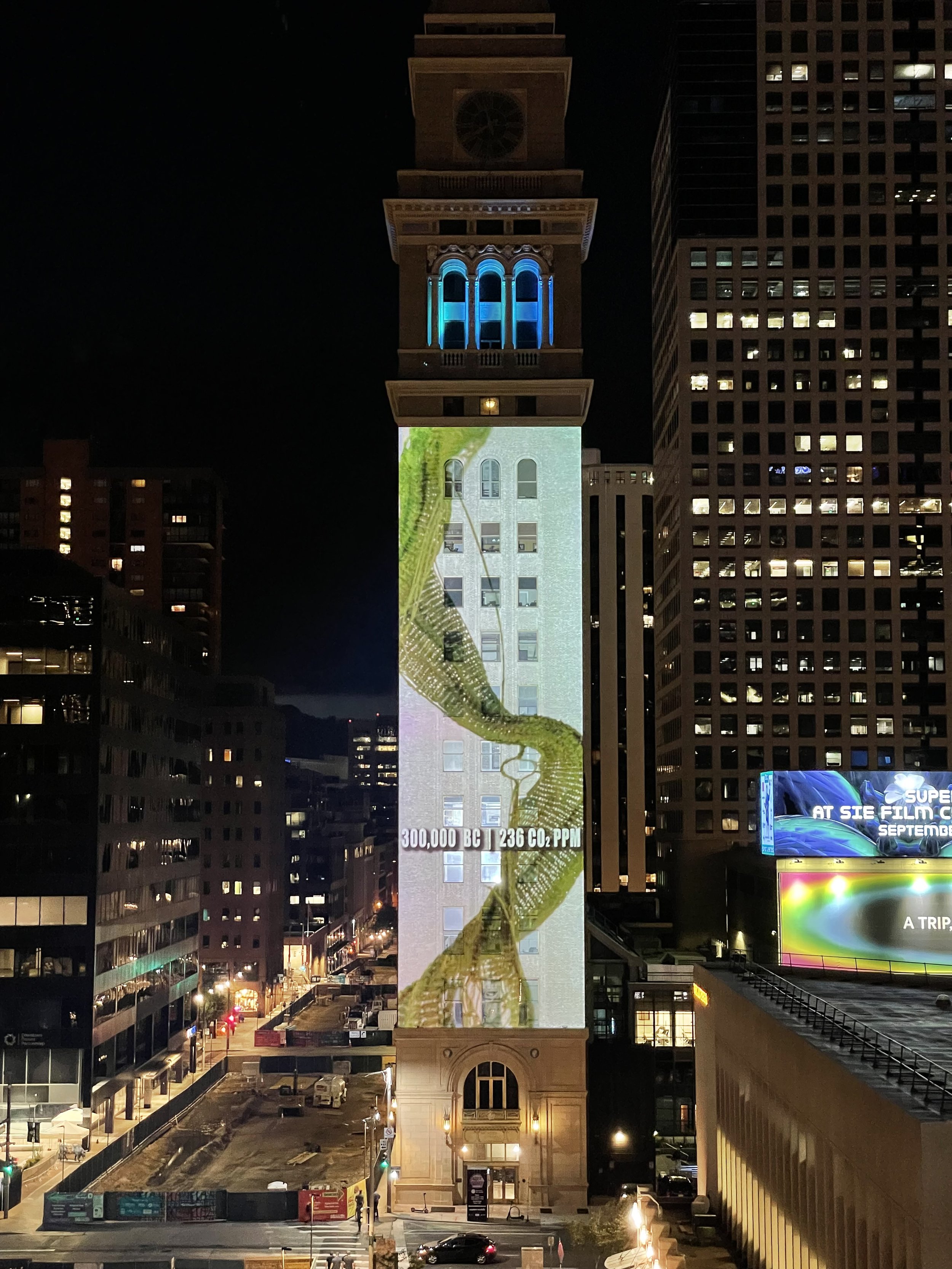 Denver Clocktower, From Green to Red projection, photos